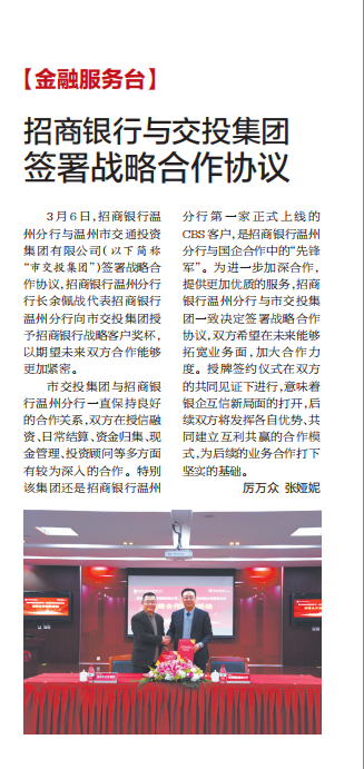 招商银行与交投集团签署战略合作协议