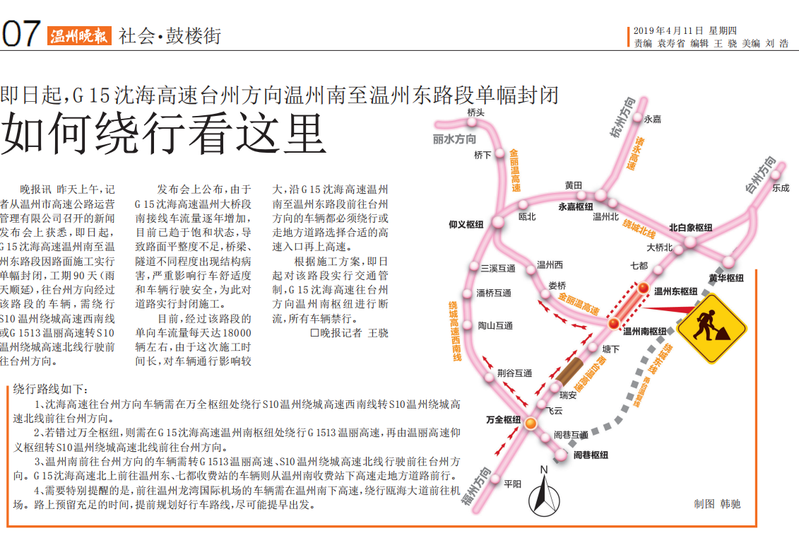 即日起,G15沈海高速台州方向温州南至温州东路段单幅封闭,如何绕行看这里