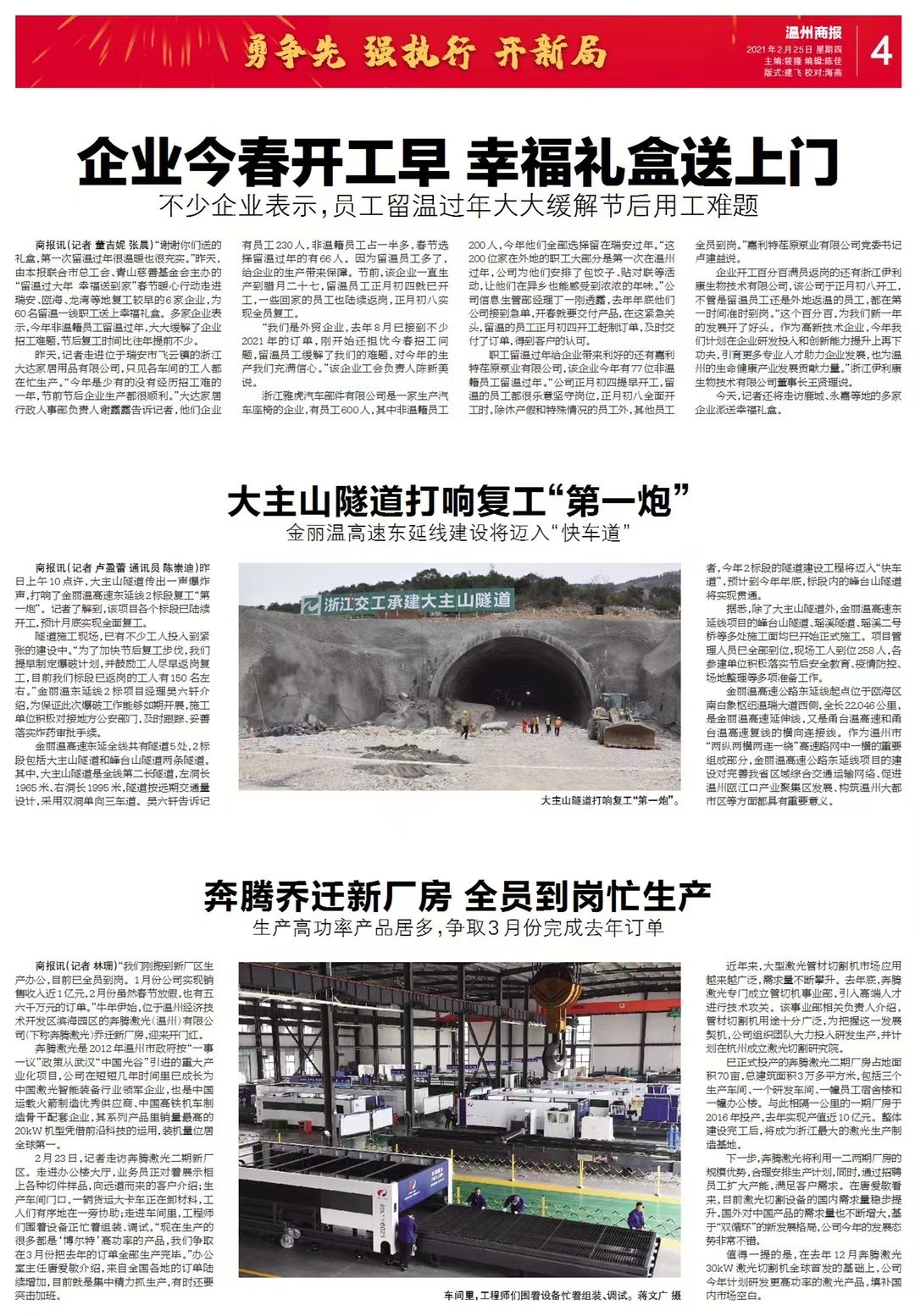 大主山隧道打响复工“第一炮”