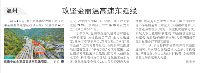 攻坚金丽温高速东延线