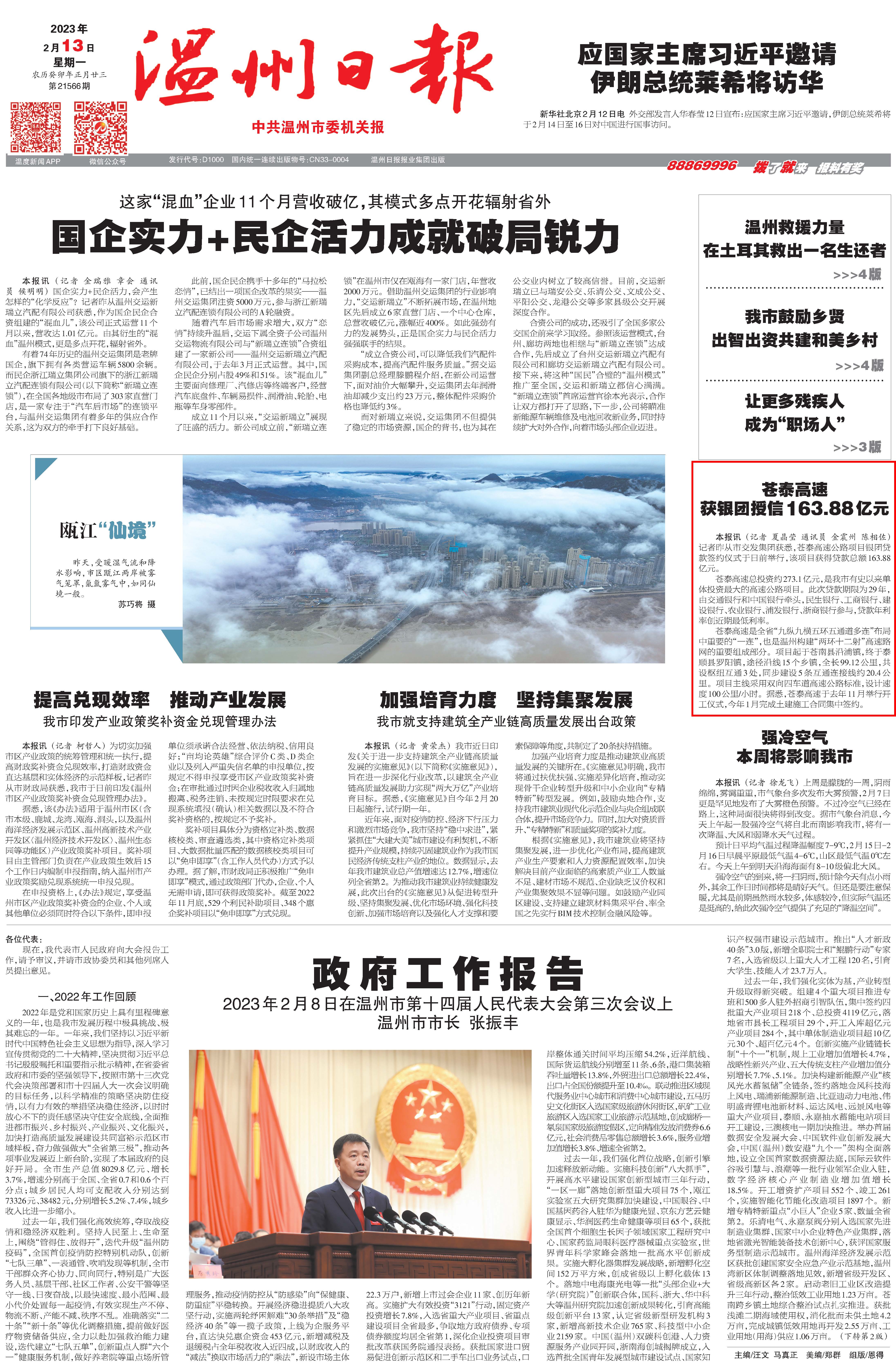 苍泰高速获银团授信163.88亿元