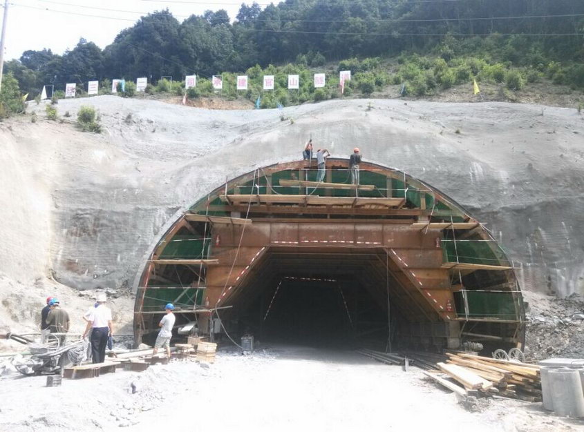 绕西南项目隧道设计采用复合式衬砌,二次衬砌是隧道施工中最主要的部位,也是最后成型的结构,因而衬砌台车是保证二衬施工质量及进度的前提条件。第1标段正岙隧道和官山隧道台车分别为12m和10.5m,钢模板厚12mm,每延米自重达8.64吨,由主体结构、电机系统、传动链条、电气系统、液压系统、行走系统等部分组成。业主公司及监理办组成验收小组,分别对台车中心线、结构尺寸、模板的平整度等关键部位进行认真严格地测量复核,确保符合规范及标化要求,为后续隧道二衬施工质量控制提供有力保障。