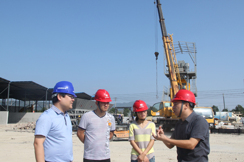 刘钱副总经理及各部门人员在项目主管缪为刚的陪同下,认真检查了4标项目部拌合站、钢筋加工厂、工地试验室的建设,对4标“三场”建设的总体规划和施工进度给予了好评。同时,刘总也就施工安全、质量和进度提出了要求和建议。首先,现场的办公、住宿等临建房屋必须采用防火阻燃材料搭建,防止发生火灾事故。本地台风比较频繁,现场临建设施必须进行可靠加固。其二,三场场地面积较大,必须做好防排水设施,做到雨后无积水;本标段料仓较大、较高,应做好料仓间的隔离,防止雨水打湿原材,或者出现原材混合现象。其三,抓紧施工进度,力争尽早拌制混凝土,减少三场建设成本;工地试验室争取在月底前完成备案和验收工作。最后,现场应做好职工学习、娱乐设施,充分利用场地,建立民工学校,建好篮球场,让一线职工在繁忙的工作之余能开展内容丰富的学习、娱乐活动。