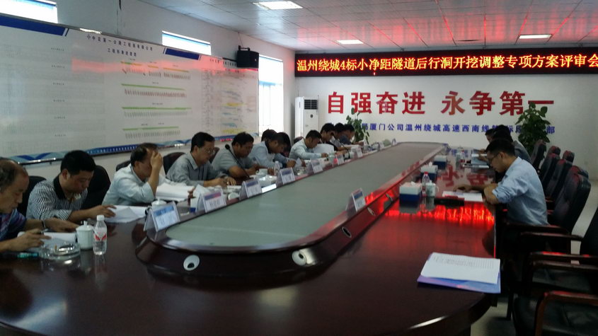 10月30日,绕西南项目第4标段小净距隧道后行洞(Ⅴ级围岩一般段、Ⅳ级围岩)开挖调整方案专项施工方案评审会召开。温州沈海高速建设公司、浙江水利电力学院、中铁一局五公司、永嘉县交通规划设计院、瓯北大桥施工监理等单位专家,业主单位、设计单位、第1监理办等代表参加。