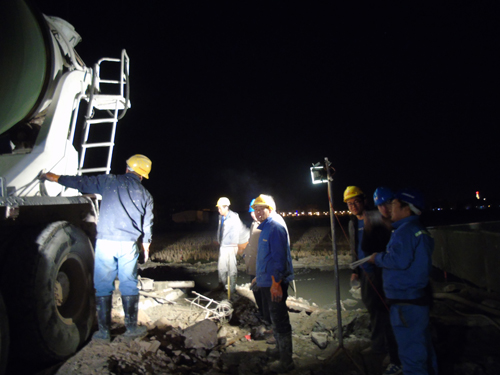 1月1日傍晚,4标项目部施工现场仍是干劲十足:第4根钻孔桩正在进行砼灌注、第5根钻孔桩正在旋挖成孔,砼运输车来回穿梭、导管一节节顺利拆除清洗、旋挖机不停运转……4标项目部以施工小高潮为新年献礼。