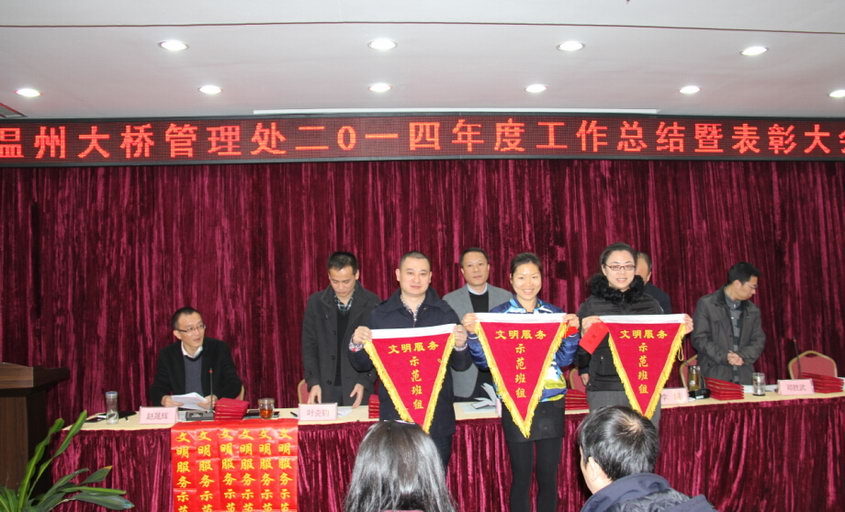 会上,处副主任叶克钧就2014年上半年运行工作进行了总结。处主任助理赵晟辉宣读了2014年下半年“文明杯”岗位竞赛及年度“文明服务擂台赛”评比结果,并进行了表彰。随后,处主任戴新荣作2014年度工作总结。戴主任指出,大桥管理处在集团党委和总经理室的坚强领导下,在全体干部职工的共同努力下,以通行费征收工作为中心,通行费收入再创新高;人力资源管理工作持续健康发展;重大节假日小型客车免费通行工作顺利实施;我市高速公路首台自助发卡机在温州东收费站正式启用;在助力温州北收费站按期开通工作成绩显著;企业文化建设、职工思想稳定、安全生产管理等方面工作亦是可圈可点,企业各项事业呈现稳健发展的良好态势,实现了经济效益和社会效益的双丰收。同时,戴主任还就2015年工作进行了具体部署。