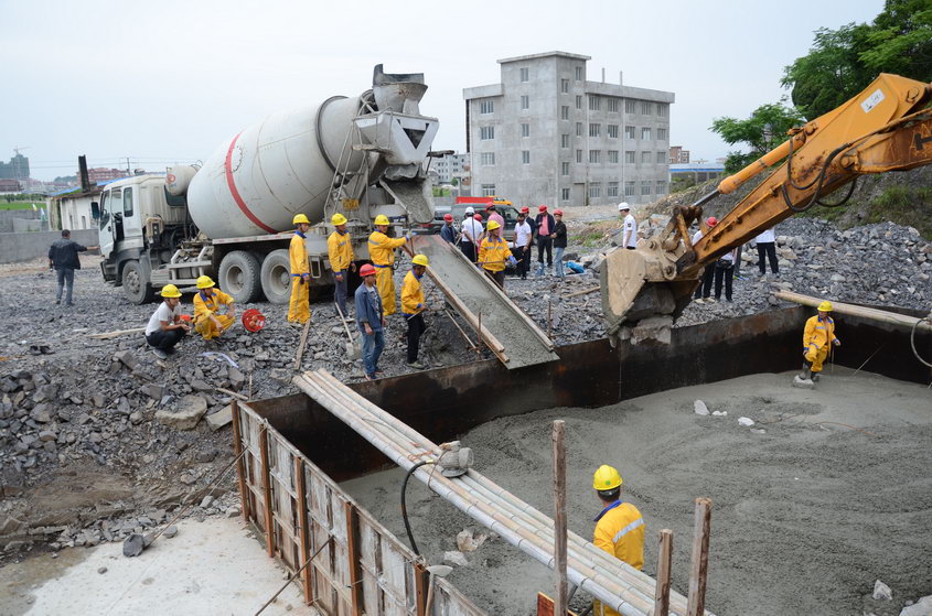 5月21日下午,在绕北二期项目第4标段南山隧道出口施工现场,随着振捣器嗡嗡的奏响,一车车混凝土沿着滑槽落入模中,经过3个多小时不间断浇筑作业后,南山隧道出口路基高档墙护脚基础顺利完成首次片石混凝土基础浇筑工作。