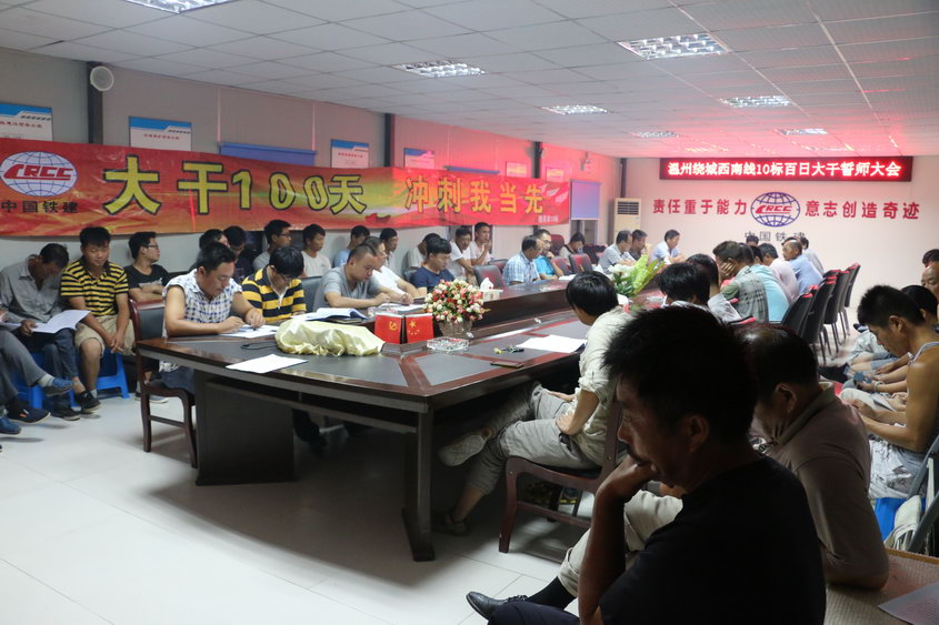为大力推进工程建设,响应“两美”浙江立功竞赛活动的号召,顺利完成2015年度计划产值,绕西南工程第10标段于8月17日组织召开了“百日大干”誓师大会,拉开了“大干100天”竞赛活动的序幕。