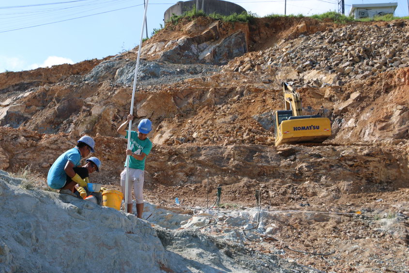 经由前期炮头机、挖掘机等大型机械对山体的挖掘准备,项目部开始组织人力、机械及材料进场,着手实施静力爆破。静力爆破作为新技术、新工艺,项目部高度重视,严格把控成本,确保技术保障先行,安全措施齐头并进,确保了静力爆破的安全顺利实施。