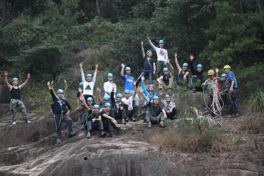 培训中队员们认真观看教练员教学演示,并充分结合之前所学保护技术、绳结技术、保护点设置等技能进行练习操作。