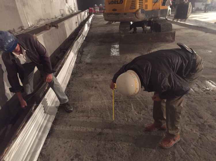 待各项工作准备就绪,作业人员开始安装钢筋、模板及拉杆等工作,浇筑前,项目部技术人员和现场监理认真检查钢筋网和预埋件是否预埋准确,精确测设砼路面顶面高程是否符合要求,仔细核查钢筋及模板安装质量和保护层设置是否符合规范要求、堵头模板是否安装牢固。试验人员严格控制砼配合比,做好原材料检验等各项准备工作。施工过程利用了插入式与附着式振动器相结合边浇筑边振捣的工艺,同时严格监控混凝土和易性与塌落度,观测模板受力变化,确保不堵管、不涨模、不移位。在项目部精心组织下,施工人员精细化作业,官山隧道首段水泥砼路面浇筑工作顺利完成。