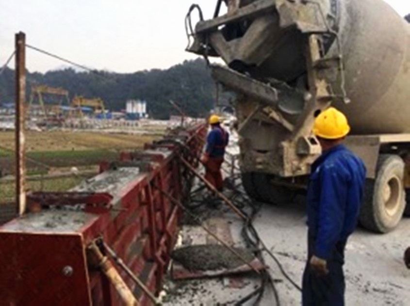 绕西南第4标段首段防撞护栏成功浇筑