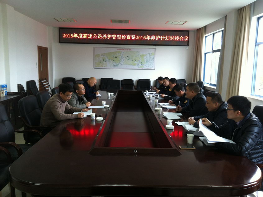 12月10日上午,市高速路政大队王政副大队长带队检查绕城分公司养护管理工作,并于绕城高速公路黄田管理中心二楼会议室召开2015年度高速公路养护管理检查暨2016年养护计划对接会议。绕城分公司总经理助理金建敏陪同检查。