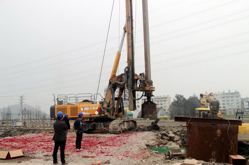 3月8日上午8:40,绕北二期工程2标施工现场人头攒动,鞭炮齐鸣,迎着早上和睦的春风和喜庆的鞭炮,已准备就绪的旋挖钻,挥动着壮实的大臂,深深地扎进大地,将沉睡已久的泥土掏出地面,标志着绕北二期工程土建2标首桩正式开钻,拉开了桥梁桩基施工的序幕。