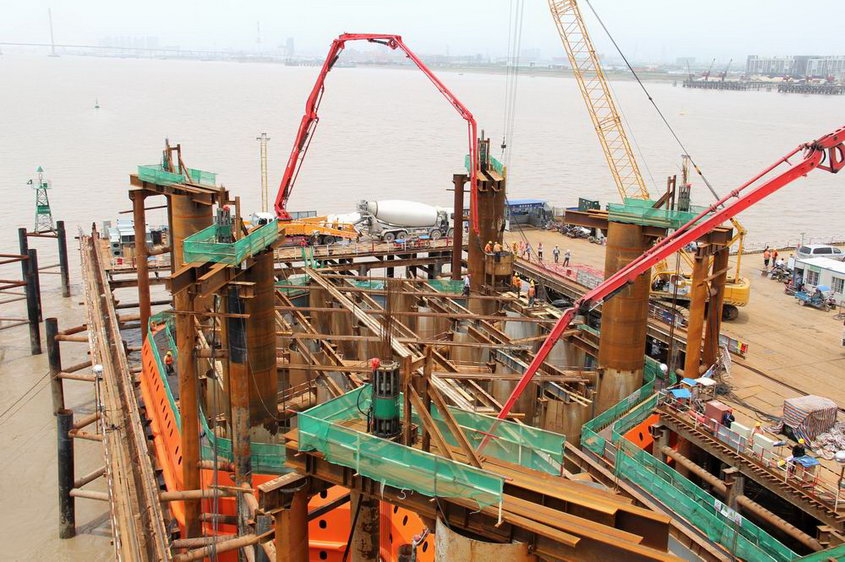 甬台温复线飞云江跨海特大桥南岸主墩首次成功封底