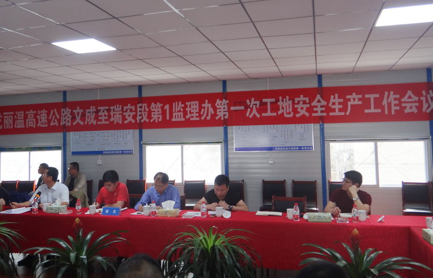 5月18日龙丽温高速公路瑞文工程1监办召集土建第1、2、3标项目部项目经理、总工及安全负责人在1标项目部召开了第一次工地安全生产会议,瑞文公司副总经理覃毅宝、安全总监潘崇光及安全部门人员参加了会议。