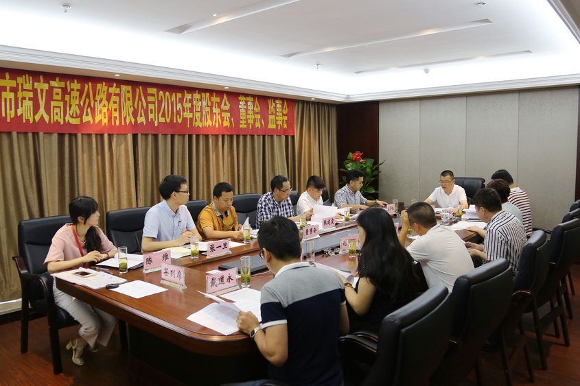2016年6月30日下午,瑞文公司在公司会议室召开了2015年度股东会、董事会、监事会。公司各股东单位的代表、董事、监事共13人出席此次会议。会议由市交投集团董事长兼瑞文公司董事长秦肖主持。