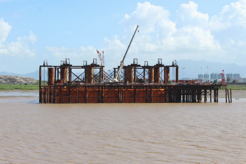 该防撞套箱的顺利下放,是鳌江特大桥开工建设以来的一个重要里程碑,为后序施工的有序开展奠定了坚实的基础。