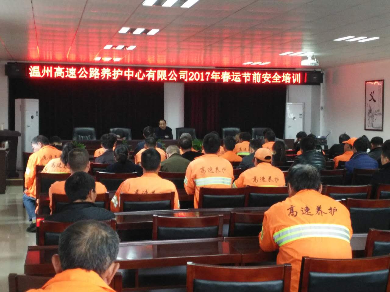 为全力配合交管部门做好2017年春运期间高速公路道路交通管理工作,进一步做好春运期间高速公路养护工作及安全施工教育工作,2017年1月6日上午9点,养护中心组织开展春运节前安全培训。本次培训特邀请了高速交警夏子航警官进行授课。养护中心领导、各部门负责人及从事日常养护工作的职工均参加了本次学习。