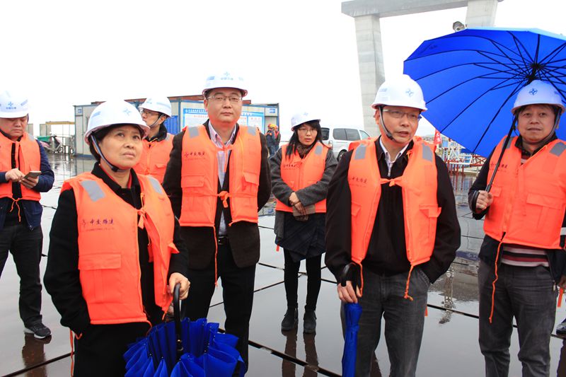 楼晓寅一行仔细查看了飞云江跨海特大桥的桩基、桥墩、主塔等部位施工进展情况,详细询问了各部位施工工艺及施工过程控制和监管措施。