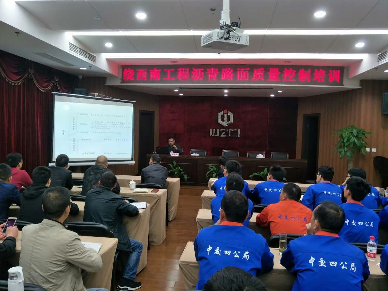 讲课内容结合严谨理论与丰富实例,涵盖了沥青路面施工的原材料选择、施工机械管理、沥青摊铺、碾压成型以及最后的成品检测管理,台上授课老师讲得深入浅出,台下学员听得认真仔细。培训最后还重点围绕沥青路面常见质量通病进行了细致讲解,为全体人员敲响警钟。公司总工黄应明强调,工程质量控制任重道远,要把控好建设过程中的每个细节,各标段要严格落实质量保证措施,努力将绕西南工程打造成为精品工程。