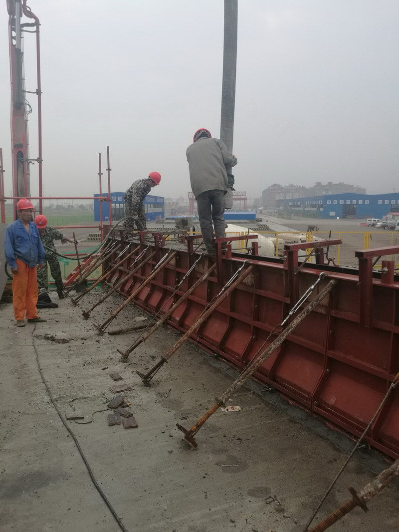 绕北二期工程七里港互通E匝道桥首节防撞护栏顺利完成浇筑