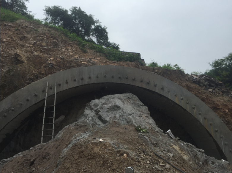 高投公司项目1标杏湾山隧道右线出口端管棚施工完成