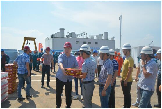 近日,集团总工程师周列茅、瓯江口公司总经理郑锋利等一行,莅临瓯江北口大桥工程土建一标、土建二标施工现场,慰问战斗在施工一线的监理人员和工程技术人员,送来了防暑降温用品。