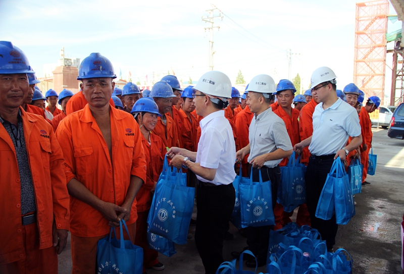 在小港高架桥施工现场,赵思平一行与现场作业人员亲切握手,对他们在高温酷暑下仍坚持奋战在施工一线表示慰问和感谢,并为他们送上矿泉水、毛巾、清凉油、防暑降温药品等夏令用品,叮嘱大家一定要注重劳逸结合,注意安全和谨防中暑。同时要求项目部切实做好防暑降温工作,合理安排作业时间,既做到安全、有序工作,又确保一线职工安全。