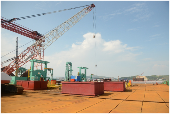 南塔钻孔平台作为南塔施工的先决条件,先行完成不仅为南塔下部结构的施工打下坚实的基础,也标志着南塔桩基施工取得实质性进展。
