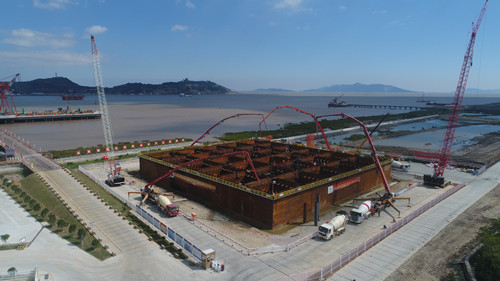 瓯江北口大桥南锚锭钢沉井混凝土浇筑完成