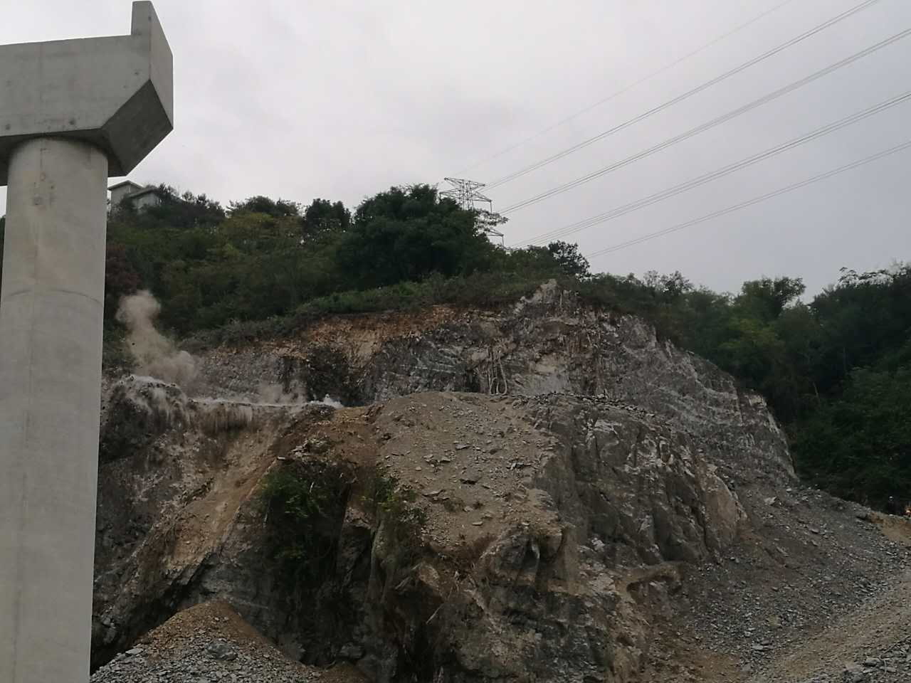 南山隧道进口边仰坡施工位置特殊,石质坚硬,机械开挖难度较大,因周边近距离有聚集的民房、220KV高压线塔、村道等,采用露天爆破技术安全风险较高,震动波对民房和高压线塔基的影响不能得到有效控制。因此,经项目安全生产领导小组反复讨论决定,对南山边仰坡施工采用国内先进的二氧化碳致裂技术。