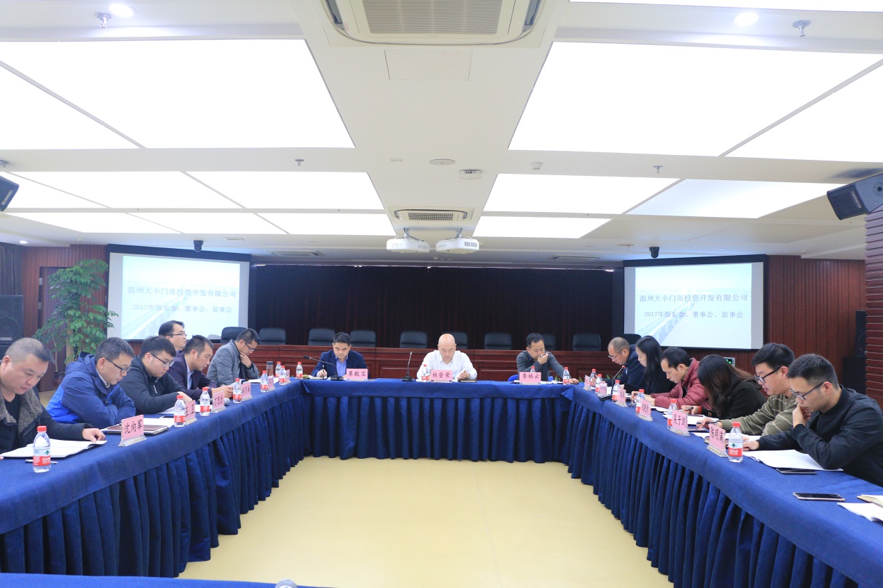 11月27日下午,大小门岛公司2017年度股东会、董事会、监事会在集团11楼会议室召开。各股东单位代表、董事、监事出席会议,公司高管及相关人员列席会议。