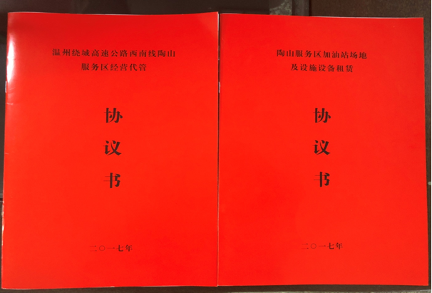 近日, 温州市高速公路资产经营有限公司与温州绕城高速公路西南线有限公司就陶山服务区经营管理有关事项签订代管协议;温州绕城高速公路西南线有限公司与经营公司下属合资公司温州市交投石化销售有限公司就陶山服务区加油站项目签订租赁协议。