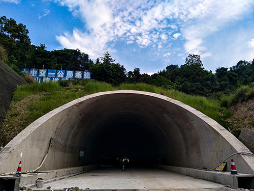 杏湾山隧道设计为分离式扩建隧道,隧道拓宽采用两侧各新建一座二车道隧道的形式,既有隧道利用维持不变。隧道左洞全长420m,右洞全长440m,隧道内采用沥青混凝土面层与水泥砼底板组成的复合式路面结构,水泥砼底板采用25cm厚C40连续配筋砼一次浇筑成型。由于杏湾山隧道为1标段一二工区的“咽喉”,在目前工期紧、任务重的情况下发挥重要通行作用。通过合理安排计划,集中资源率先完成了右洞路面浇筑,在确保右洞可以通行的条件下,临时封闭左洞施工,既圆满完成了隧道此项节点工程也保证了其他各工点的高效有序施工。