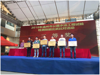 10月29日,由温州市交通运输局及温州市总工会组织的“2018年温州市公路水运工程试验检测技能比武比对活动”,在温州市交通工程试验检测有限公司举行,活动邀请了浙江省交通建设工程监督管理局﹑温州市交通运输局及温州市总工会领导出席,共计92家单位参加该比武比对活动;温州瓯江北口大桥项目部派出了3位试验人员参加比赛,并取得良好成绩。