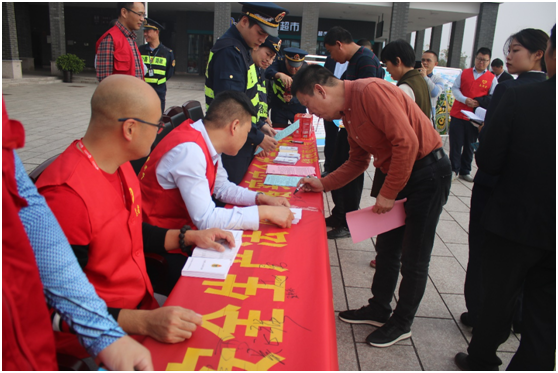 活动中,工作人员积极宣传《安全生产法》,给过往司乘提供各类交通指示安全册,现场解答安全自救互救知识、并通过展板展示交通法规常识,将生动的图文与常见的典型案例相结合,以通俗易懂的方式,给群众讲解交通安全知识,让大家身临其境感受高速交通安全的重要性。同时,工作人员号召广大司乘人员在宣传横幅上签订自觉遵守交通安全的承诺,活动现场气氛热烈。