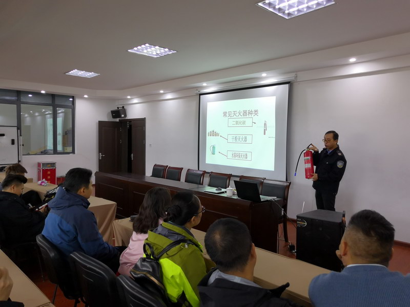 培训中,张万银首先带领大家观看交通行车安全专题视频,旨在提高员工驾车出行的文明意识和安全行车意识,切实做到遵守交通法规。张万银用一个个真实的案例,惨痛的经验教训,对如何预防火灾事故发生,火灾发生时正确的自救逃生方式,消防安全应急常识及消防器材的使用等进行了详细的讲解。