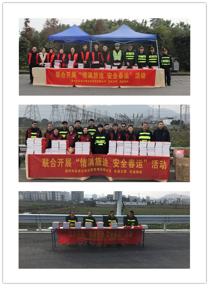 为大力弘扬“奉献、友爱、互助、进步”的志愿服务精神,着力提高和延伸优质服务内涵,1月21日上午,运营公司志愿服务队联合高速交警、高速路政在温州东收费站、潘桥收费站以及黄华收费站开展了“情满旅途,安全春运”为主题的便民服务活动。