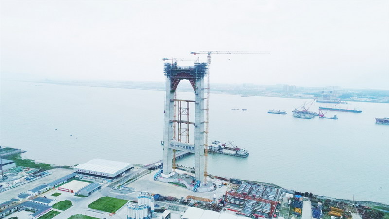 温州瓯江北口大桥北塔完成上横梁首次浇筑