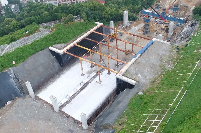 北引桥全长3.22千米,由合并段和分离段组成,包含单层现浇箱梁、双层现浇箱梁、单层钢混组合梁、双层钢混组合梁、框架桥五种结构形式。框架桥位于龙蛇山,全长75米,上层为高速公路瓯江北口大桥行车道,下层为南金公路行车道,由主体结构和围护结构组成。山上地势复杂、场地狭小便道较陡和多雨天气的影响给框架桥施工带来不利影响。
