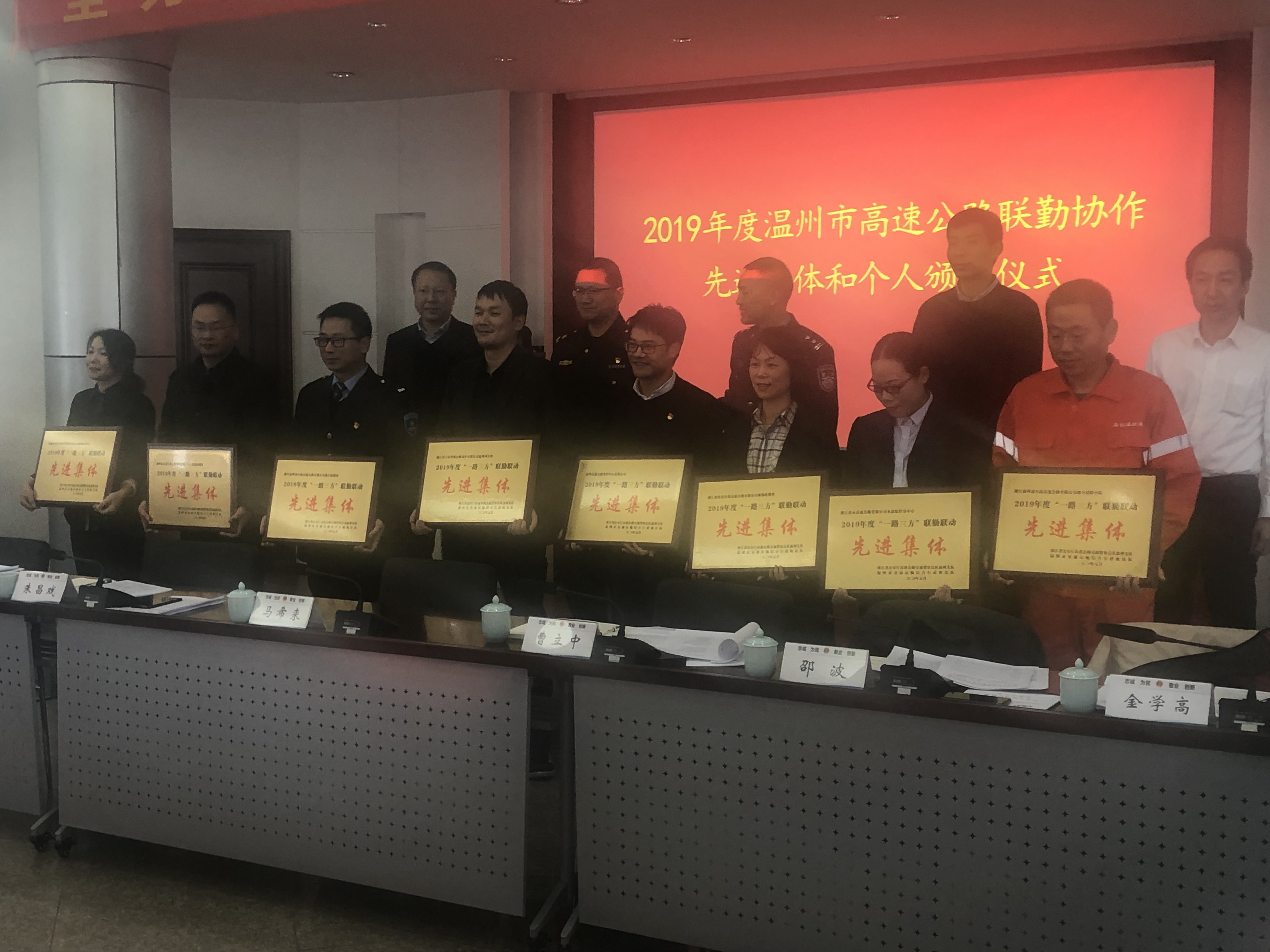 1月9日,养护中心荣获省公安厅高速总队温州支队“2019年度一路三方联勤联动先进集体”荣誉称号。