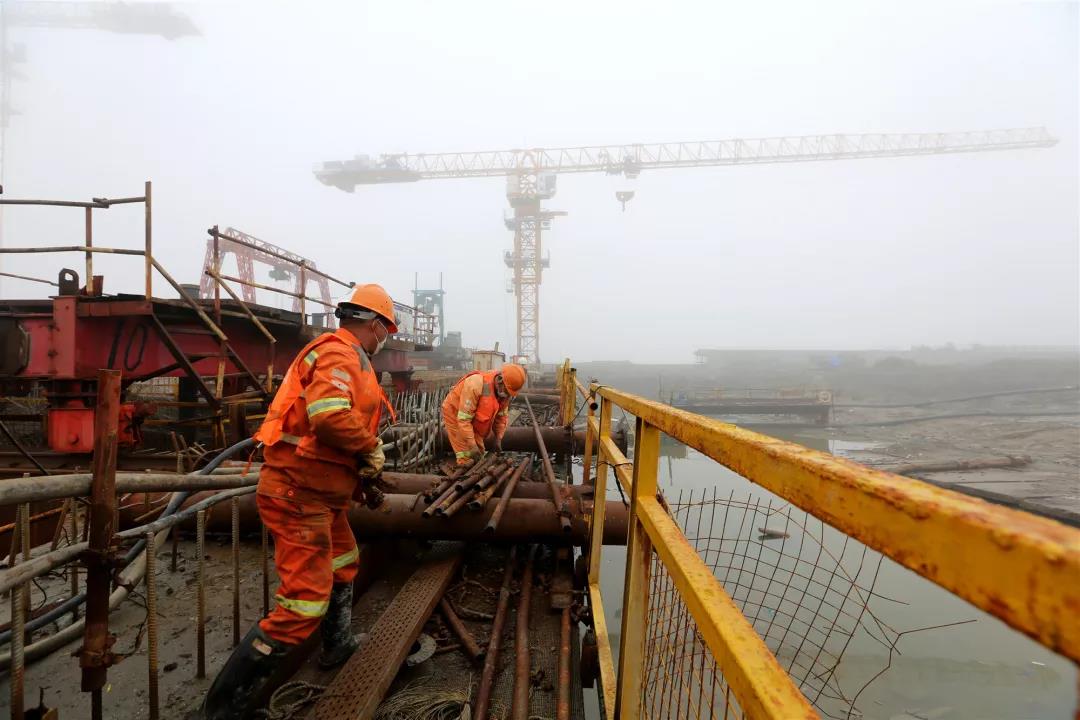 2月18日,北口大桥项目经瓯江口产业集聚区批准后正式复工,留守过年的工人们在各自岗位开始忙活起来。