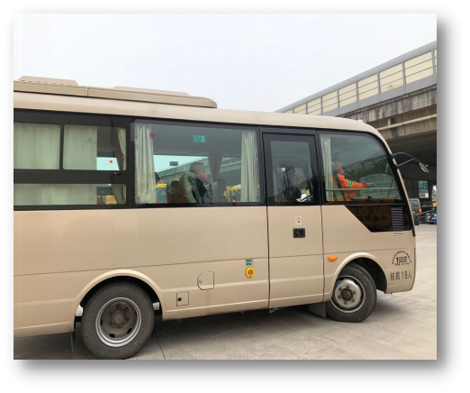 在前期摸底的基础上,养护中心决定分批次安排接送车辆上门接送工人到达项目工区。2月24日,养护中心开通首班“复工复产直通车”,将班车开到永嘉县下属各个乡镇将10多位一线工人安全接送到自己的工作岗位。