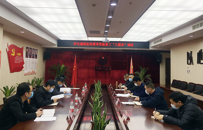 3月5日,市交通质监局副局长杨友良一行赴温州筑诚交通工程监理有限公司开展复产“三服务”调研活动,筑诚公司领导班子参加会议。