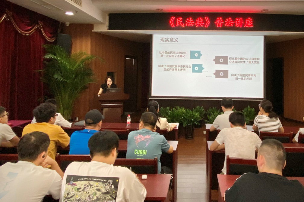 为大力弘扬社会主义法治文化,营造广大干部职工遵法、学法、用法、守法的良好氛围,掀起学习宣传贯彻《民法典》热潮。8月20日下午,诚达公司联合东延线公司邀请浙江泽商律师事务所开展《民法典》普法宣传讲座。