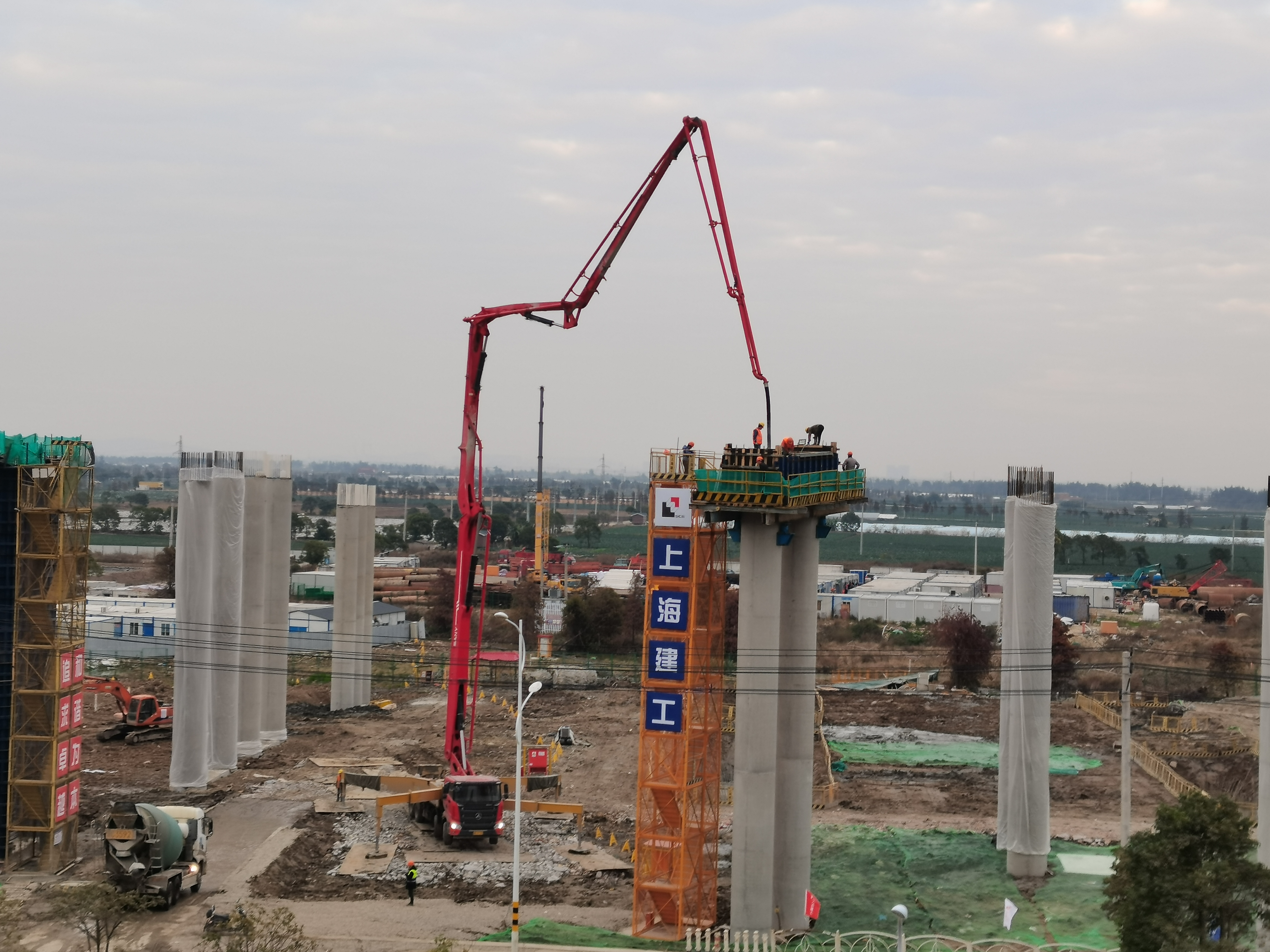 此次浇筑的盖梁长7.55米,宽1.9米,高1.4米,位于金丽温高速公路东延线工程3标机场枢纽区域。为保证首件盖梁的顺利浇筑,业主、监理及项目部超前谋划、精心组织,严格按照“首件制”要求,对盖梁施工工作进行了周密部署,从施工作业人员安全培训、技术交底、施工工艺流程、冬季施工措施、材料设备供应以及混凝土配合比等方面安排专人层层把控,切实落实标准化施工要求。浇筑混凝土时,工程技术人员、专职安全员、试验员及监理全程紧盯,从安全爬梯搭设、钢筋保护层合格率及混凝土坍落度、成品外观等关键工序均进行实时管控,确保了首件盖梁的成功浇筑。