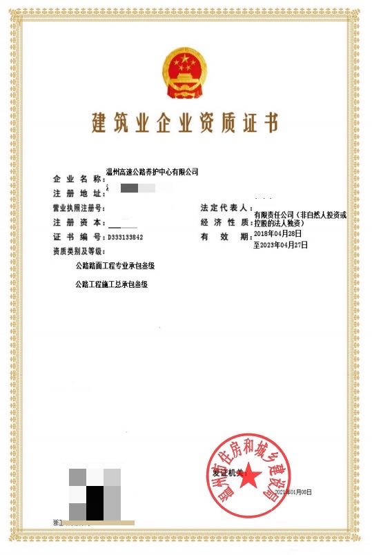 近日,经温州市住房和城乡建设局核准,伟德国际victor1946所属温州高速公路养护中心有限公司获批公路路面工程专业承包三级资质,标志着养护中心资质建设又上了一个新台阶,是公司继取得公路养护全门类资质、施工总承包三级后公司资质建设方面取得的又一重大突破。