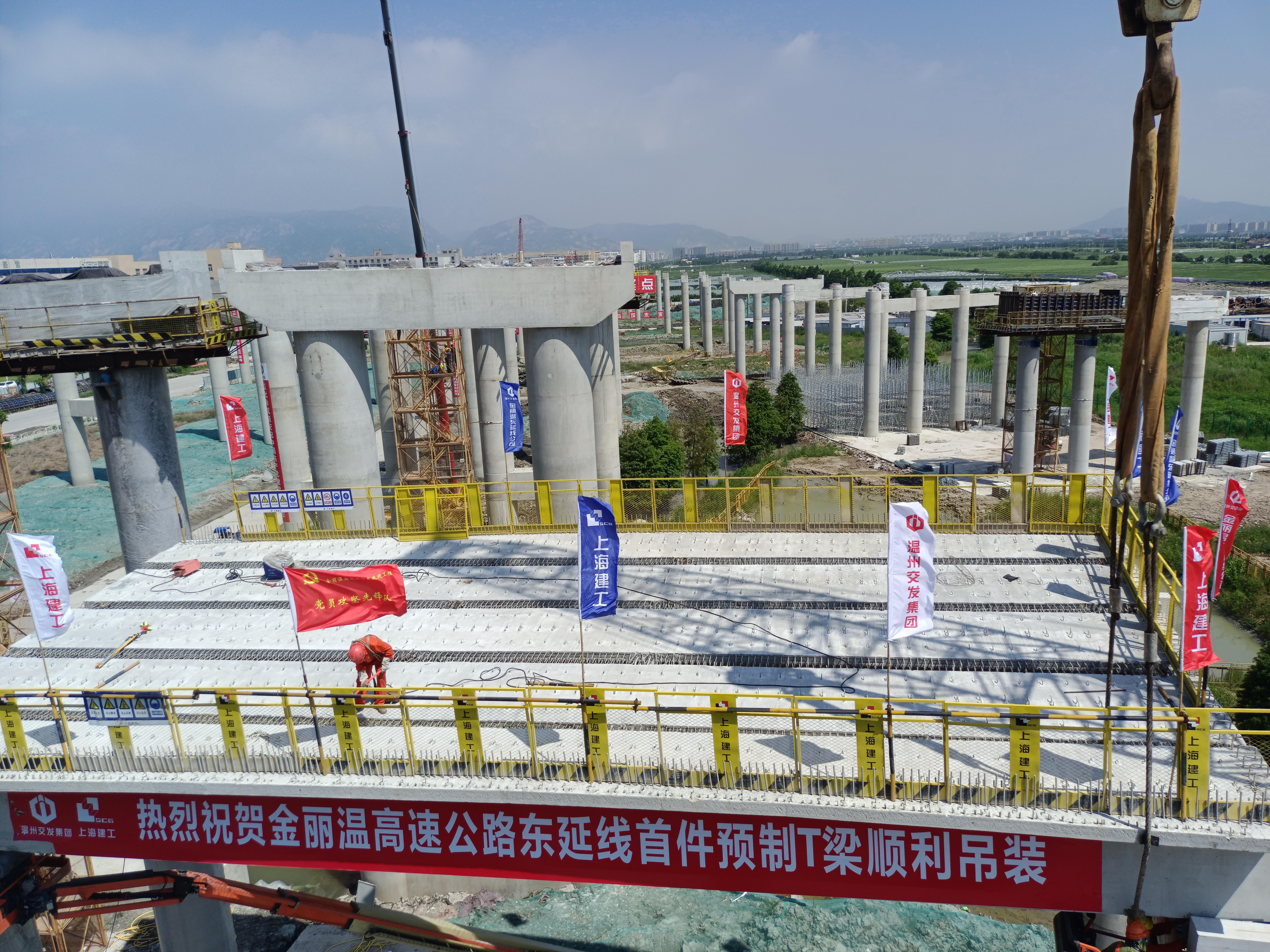 金丽温东延线工程首件预制T梁顺利吊装完成