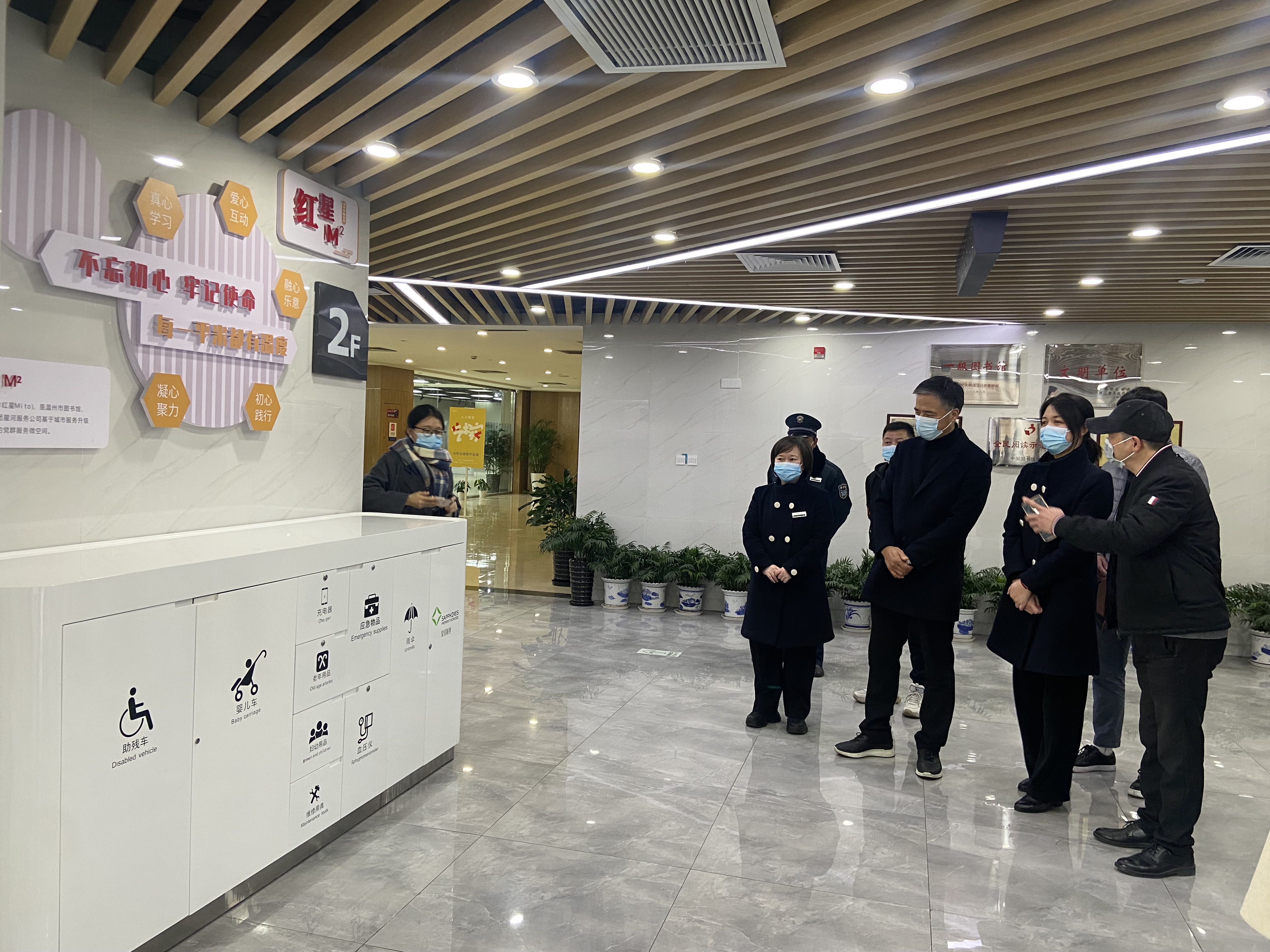 赵立扬一行人先后走访了交发集团星河物业在管项目:图书馆和江心屿,参观了星河物业于建党百年在不同场馆而创建的“红星㎡”党群服务微空间,听取了现场管理人员相关工作汇报,并就近期防疫工作、项目现场服务特色等相关情况进行了深入了解。